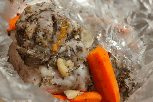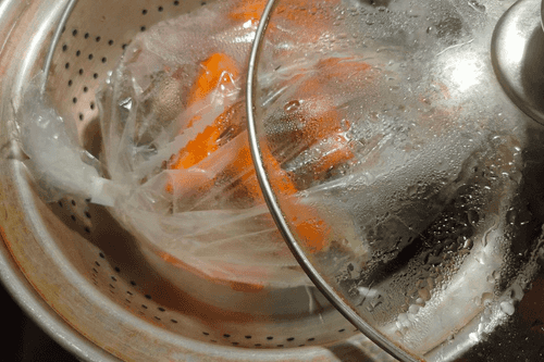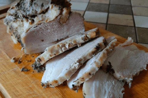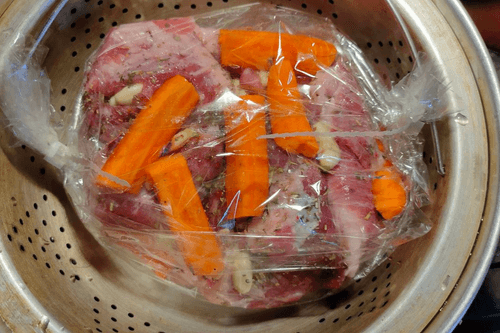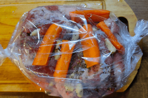 Когда буженина приготовится, открыть рукав с одной стороны, выпустить пар и слегка остудить.