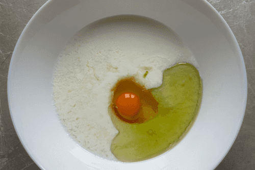 Добавить яйцо, масло (20 мл), соль и перемешать.