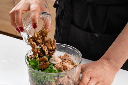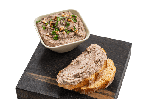 Идеальное сочетание тунца и фасоли создает гармонию между насыщенной текстурой бобовых и ярким вкусом рыбы. В этом паштете присутствует грузинский штрих, который добавляют грецкие орехи, лук и кинза.