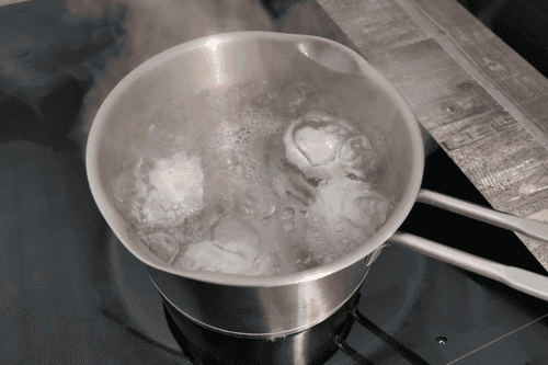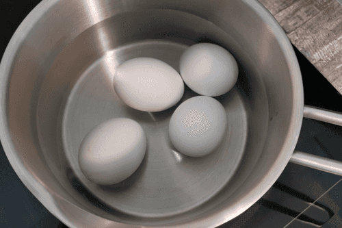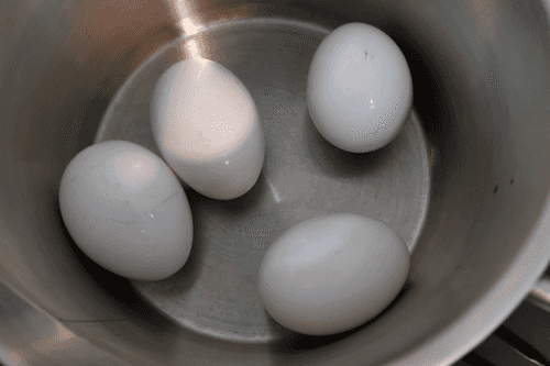 Довести до кипения, затем варить не менее 8 минут. Итоговое состояние яиц должно быть вкрутую (время варки зависит от разновидности плиты).
