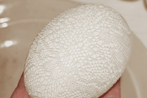 Яйца плотно обернуть кружевом.