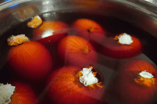 Залить водой, чтобы вода покрывала шелуху и варить час. Дать отвару остыть и настояться. Можно оставить на ночь.