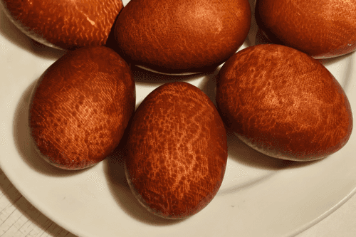 Кружевные пасхальные яйца – это уникальный и элегантный способ украсить традиционные пасхальные крашенки. Этот метод окрашивания уходит корнями в старинные русские традиции, где луковая шелуха использовалась для создания глубокого, теплого оттенка на скорлупе. Кружево придает яйцам изысканный узор, превращая их в настоящие произведения искусства. Вкус у таких яиц остается естественным, но их внешний вид делает праздник еще более атмосферным. Они станут украшением пасхального стола и символом возрождения, чистоты и весеннего обновления. После приготовления яйца смазываются маслом, что придает им блеск и завершенность. Эти яйца не только приятно дарить, но и сервировать к семейному чаепитию, где каждая деталь пропитана теплом и традицией.