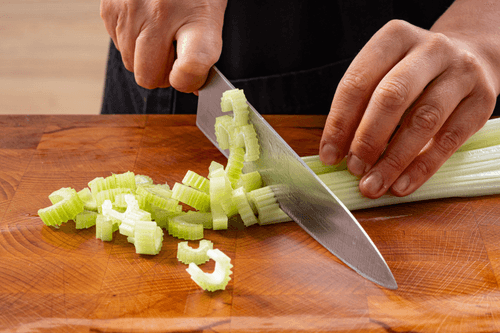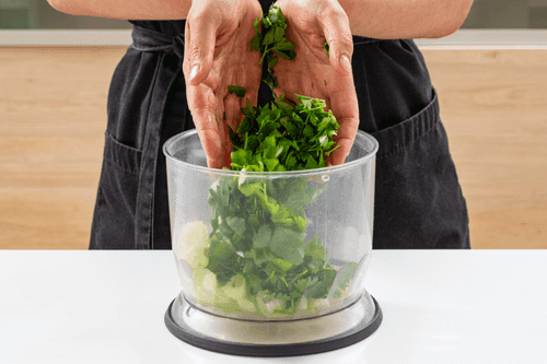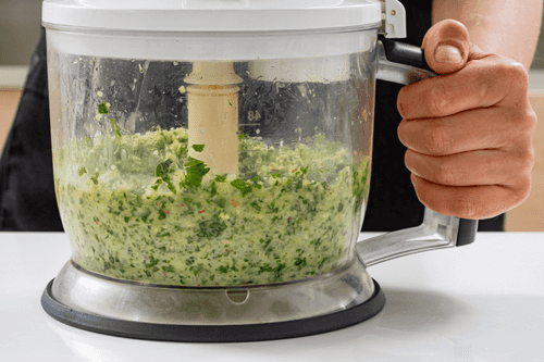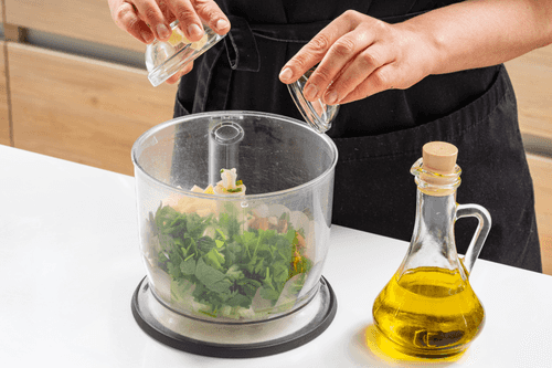 Пробить все это в массу, в которой останутся кусочки сельдерея и миндаля.
