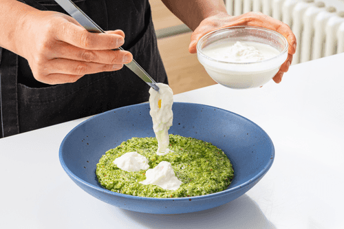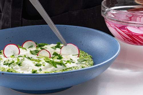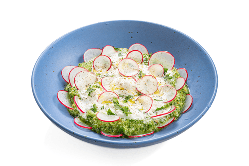 Редиска со страчателлой — это современное прочтение классических гастрономических сочетаний, где свежесть овощей гармонирует с нежностью сыра. Этот рецепт объединяет хрусткость редиски, пикантность сельдерея и ароматную зелень петрушки в сочный соус, дополненный пармезаном и миндалем. В центре внимания — страчателла, мягкий и сливочный сыр, который, соединяясь с зеленью, обретает новую глубину вкуса. Ботва редиса придаёт блюду дополнительную текстуру и легкую горчинку, а финальные штрихи в виде оливкового масла, соли и перца подчеркивают его гастрономическую изысканность. Это блюдо идеально подходит для летнего ужина или легкого аперитива, радуя своей оригинальностью и свежестью. Оно призвано удивлять и вдохновлять, раскрывая тонкие грани вкусовых контрастов.