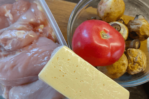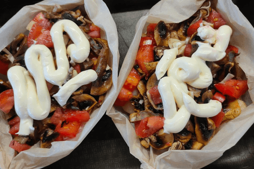 Лодочки с курицей, грибами, помидором и сыром