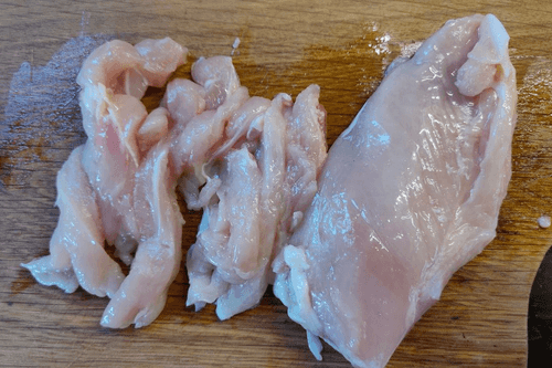 Филе нарезать на тонкие длинные полоски.