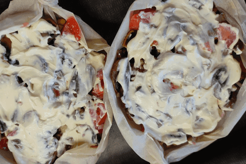 Добавить немного сливок в каждую лодочку и поставить запекаться в духовку на 35–45 минут при температуре 180 градусов.