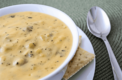 Добавить брокколи и варить еще около 2 минут, при этом помешивая и превращая брокколи в пюре.