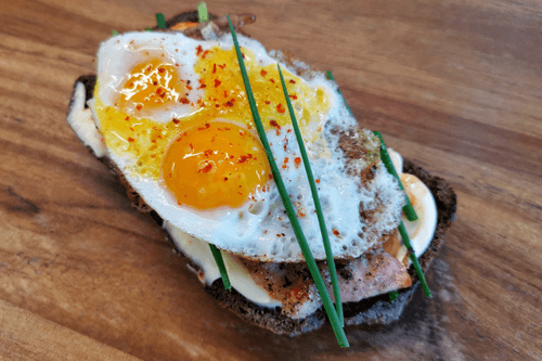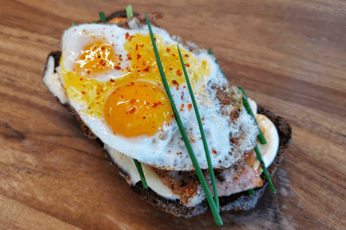Бутерброд с перепелиным яйцом — изысканное сочетание вкусов, воплощение гастрономической гармонии. Хрустящий ржаной хлеб создает прочную основу, нежный майонез и пикантный соус чили добавляют насыщенность, а хрустящий бекон наполняет блюдо ароматной глубиной. Перепелиные яйца, прожаренные до идеальной текстуры, придают утонченность, а шнитт-лук добавляет свежести. Это блюдо прекрасно подходит для утреннего завтрака, легкого перекуса или подачи на фуршетных столах. Европейские традиции соединяются с современным вкусом, делая этот бутерброд не просто закуской, а настоящим гастрономическим наслаждением.
