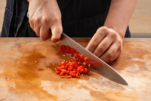 Мелко нарезать острый перец (семена можно не удалять, если нужна острота) и добавить в соус.