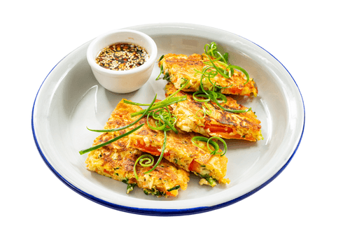 Корейские овощные оладьи паджун — это хрустящие блинчики, наполненные свежими овощами и зеленью, традиционно подаваемые с ароматным соусом. Их история уходит корнями в корейскую кухню, где они известны как популярное блюдо уличной еды и домашнего застолья. Вкус паджун богатый и разнообразный: сладость яблока сочетается с легкой пряностью зеленого лука и свежестью моркови, а золотистая корочка делает каждый кусочек аппетитно хрустящим. Этот рецепт позволяет насладиться гармонией текстур и ароматов, особенно в сочетании с пикантным соевым соусом с кунжутом и острым перцем. Паджун можно подавать как закуску или основное блюдо, идеально дополняя трапезу с другими корейскими кушаньями.