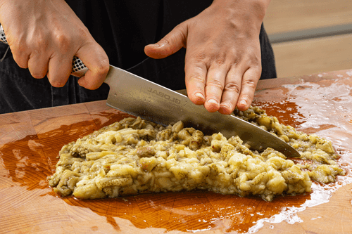 Мякоть мелко порубить ножом.