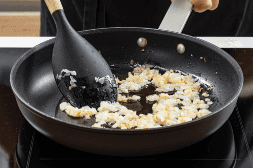 Лук мелко нарезать и обжарить на масле до золотистого цвета.