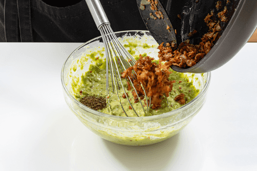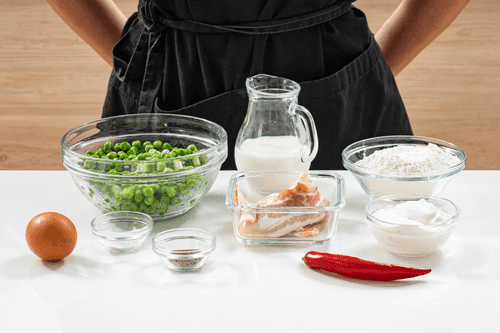 Оладьи из зеленого горошка с беконом – это восхитительное блюдо европейской кухни, которое объединяет нежность свежего горошка с хрустящей текстурой поджаренного бекона. Истоки этого рецепта можно найти в сельских традициях, где овощи и мясо гармонично сочетаются в простых и сытных блюдах. Ярко-зеленый горошек, слегка проваренный и превращенный в мягкое пюре, сохраняет свой сладковатый вкус, а бекон придаёт пикантность и насыщенность. Легкая пряность чили и аромат тимьяна добавляют глубину вкусу. Эти оладьи идеально подходят для легкого завтрака или уютного ужина, а нежный греческий йогурт подчеркивает их кремовую текстуру. Это блюдо радует не только вкусом, но и аппетитным видом, привнося свежесть и тепло на стол.