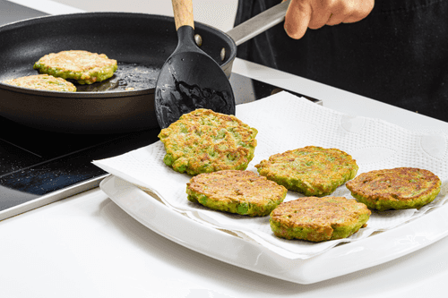 Перекладывать оладьи со сковороды на бумажное полотенце, чтобы избавить от лишнего масла.