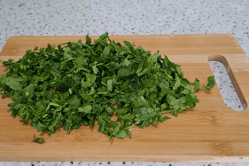 Петрушку мелко нарезать и всыпать в миску.