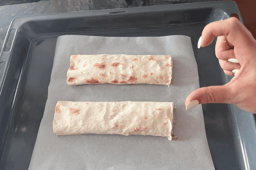 Разрезать лаваш пополам и выложить на противень.