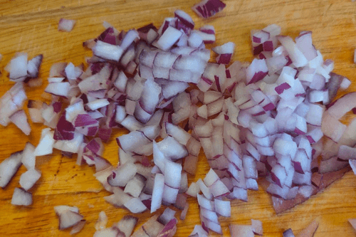 Лук нарезать мелкими кубиками.