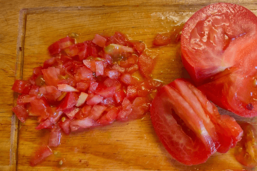 Помидор нарезать кубиками.