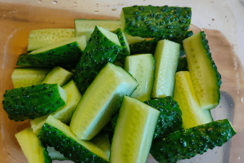 Все огуречные дольки сложить в удобный контейнер с крышкой.