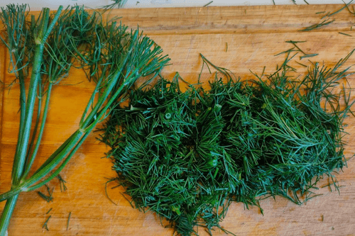 Нарезать укроп.