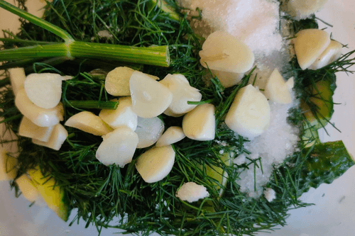Добавить укроп к огурцам.
