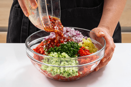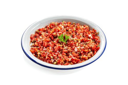 Закуска аджилы-эзме — яркое блюдо турецкой кухни, воплощающее в себе свежесть и пряность Востока. Его корни уходят в глубину турецких традиций, где свежие овощи и ароматные специи становятся основой гастрономического удовольствия. Сочная текстура измельченных помидоров, перцев и огурцов гармонично сочетается с пикантностью чеснока, петрушки и чили. Заправка из оливкового масла, лимонного сока, сумаха и хлопьев чили придает блюду насыщенный вкус с легкой кислинкой и приятной остротой. Аджылы-эзме идеально дополняет мясные блюда, шашлыки и хлеб из тандыра, пробуждая аппетит и освежая вкус трапезы. Легкая, ароматная и жгучая, эта закуска раскрывает гостеприимство турецкой кухни и погружает в атмосферу восточного застолья.