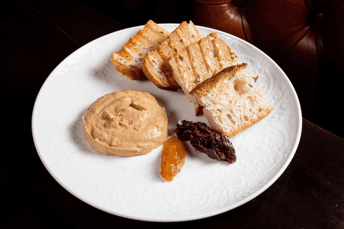 Подавать паштет вместе с луком конфи и любимым джемом.