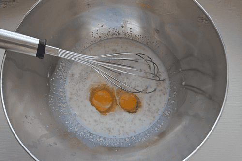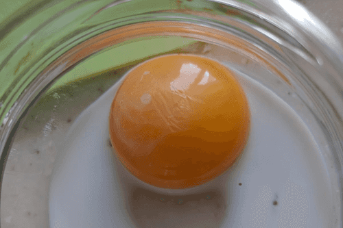 В отдельной емкости смешать желток и 10 мл молока.