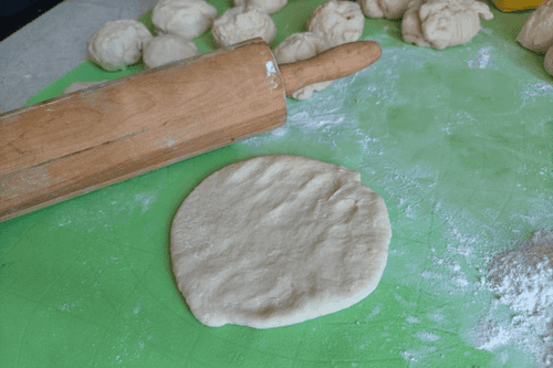 Тесто разделить на 15–16 равных частей и раскатать из них лепешки диаметром примерно 10–12 см.