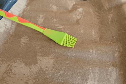 Выложить на противень пергаментную бумагу и немного смазать подсолнечным маслом.
