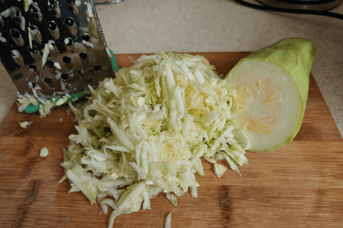 Крупный кабачок очистить и натереть на крупной терке.