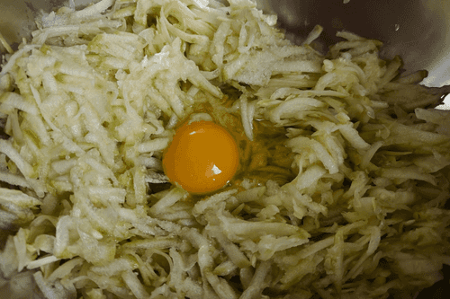 Добавить муку и замешать тесто как на оладьи.