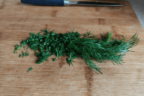 Укроп мелко нарезать.