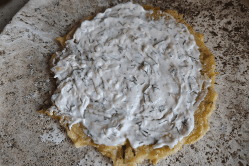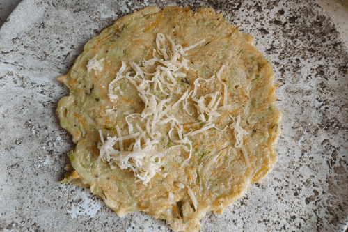 Каждый оладушек немного посыпать сыром.