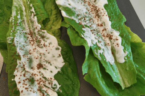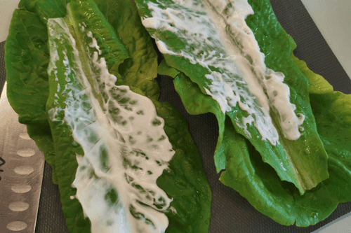 Завернуть индейку в мортаделлу. Выложить на листья салата.