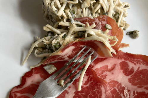 Быстрая закуска ремулад — это изысканное блюдо французской кухни, которое поражает балансом свежести, пикантности и насыщенных вкусов. Его корни уходят в традиции классических соусов, а сама закуска является легким, но выразительным дополнением к основному столу. Основа блюда — хрустящий корень сельдерея, который впитывает богатую текстуру соуса из майонеза, горчицы, каперсов и анчоусов. Лимонный сок и оливковое масло придают легкость, а свежая кинза добавляет пряные нотки. Завершающим акцентом служит сыровяленая свиная грудинка, придающая блюду глубину и насыщенность. Это идеальный вариант для аперитива или легкой закуски, который сочетается с сухим белым вином, раскрывая всю палитру ароматов французской гастрономии.