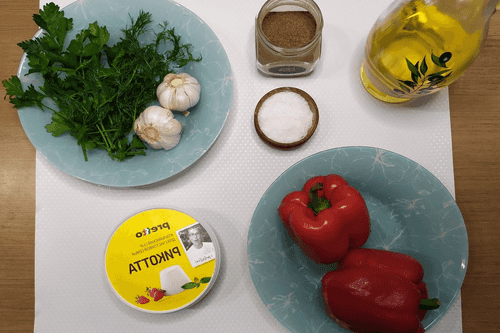 Нежная закуска из рикотты с запеченными перцами и чесноком