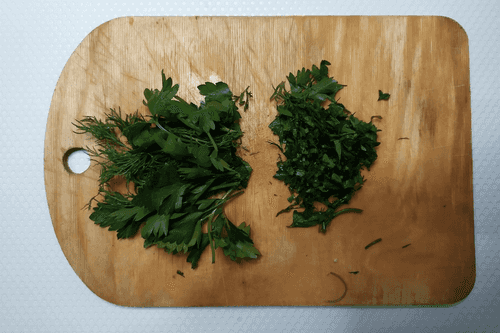 Подготовить все ингредиенты. Овощи и зелень промыть.