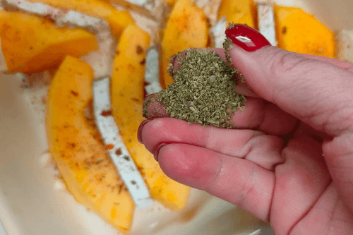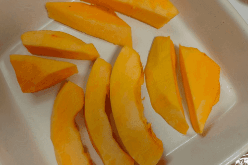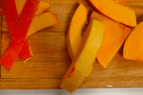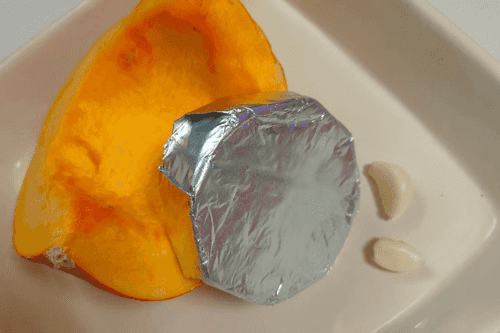 Нарезать чеснок на мелкие кусочки и добавить к тыкве.