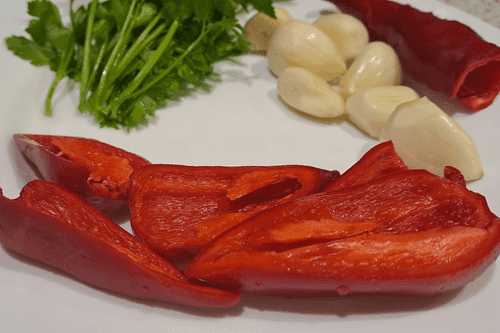 Намазка из сала с чесноком и петрушкой, острым и сладким перцем