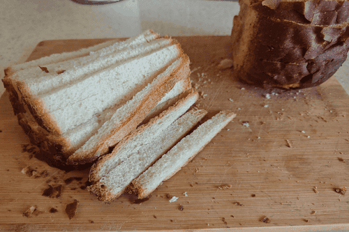 Разрезать хлеб поперек на пластины шириной 1 см.