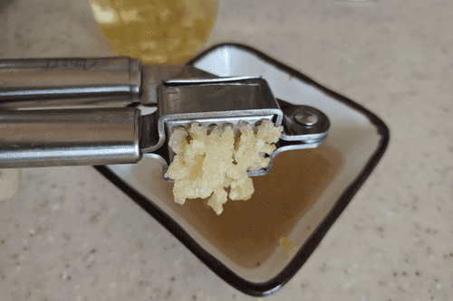 Пропустить чеснок через пресс и все тщательно перемешать.