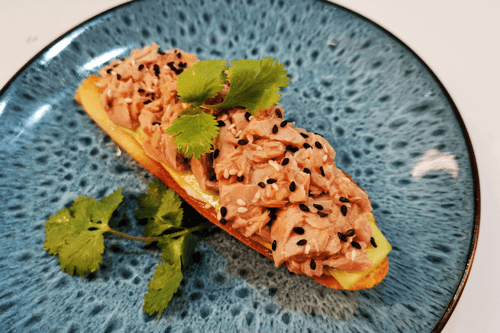 Гренка с тунцом — это изысканная европейская закуска, объединяющая хрустящий багет, нежную рыбу и свежие овощи. Истоки рецепта восходят к классическим французским тостам, но тунец, специи и зелень привносят в блюдо новые гастрономические оттенки. Хрустящий хлеб, пропитанный ароматом сливочного и оливкового масла, гармонично сочетается с пикантной горчицей и майонезом. Огуречные слайсы придают свежесть, а тунец — насыщенный вкус морепродукта, подчеркнутый кунжутом и лимонным соком. Это универсальное блюдо — прекрасный вариант для легкого завтрака, элегантной закуски на ужин или быстрого перекуса. Гренка с тунцом не только радует вкусом, но и восхищает эстетическим оформлением, делая любой стол более утонченным.