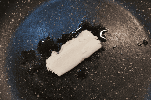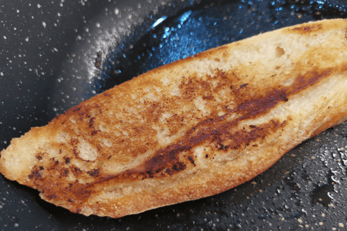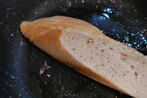 Выложить в масло кусочек багета толщиной около 2 см.