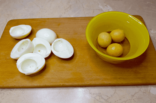 Яйца сварить вкрутую, очистить.