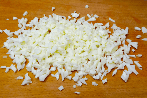 Белки мелко порубить, отправить в салатник.