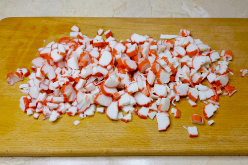 - Крабовые палочки: 200 г