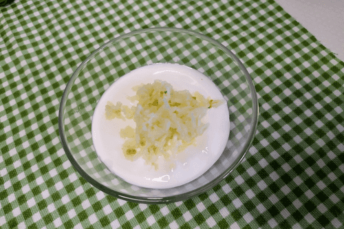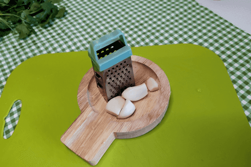 Чеснок измельчить на терке или с помощью чеснокодавилки.